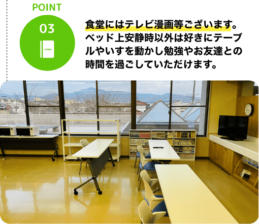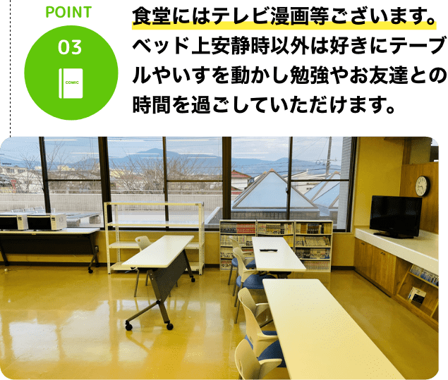 施設、スタッフの対応、ベッド、タイムテーブルに関して